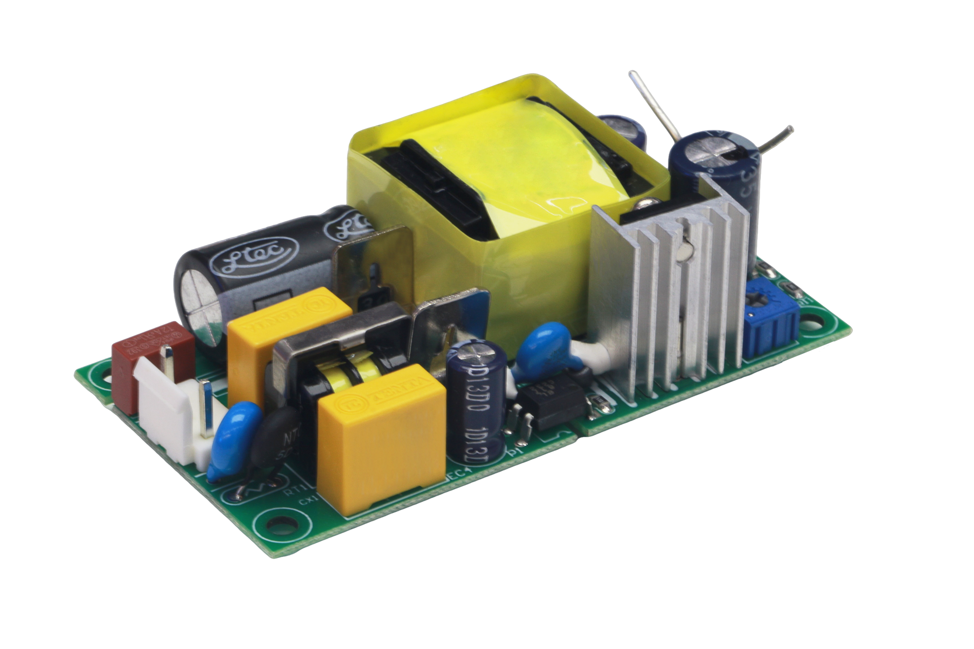 • High Precision Output: A high output voltage accuracy power supply with trimmable output voltage via potentiometer, ensuring precise voltage control. It is a 5V/12V/24V single output power supply with 12V output, 0-1.5A current range, and 24W rated power (part of 15W/24W open frame power supply options).