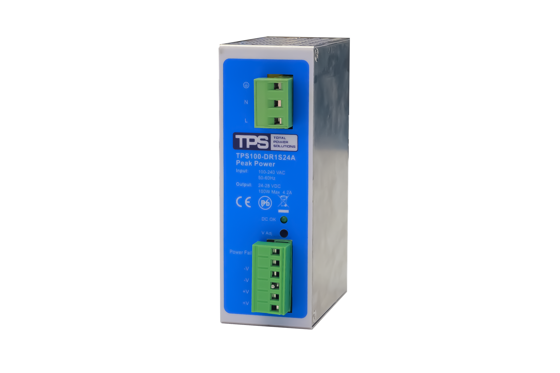 - Series Affiliation: Part of the TPS100-320W Peak DR+ Series din rail power supply, within the 100W/150W/240W/320W din rail power supply range.